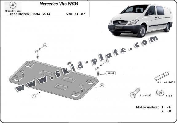 The skid plate is new and fits perfectly for the Mercedes Vito W639 - 2.2 D 4x2, with the following engine/drive versions: 2.2 D 4x2 - manufactured between 2003 and 2014.