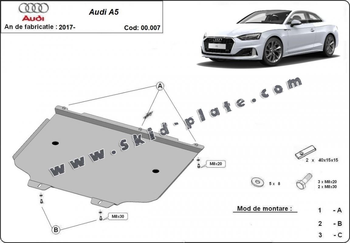 Steel gearbox skid plate for Audi A5 (2017-2026)
