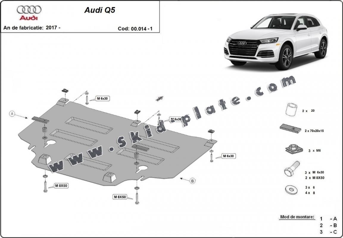 Steel gearbox skid plate for Audi Q5 (2017-2025)