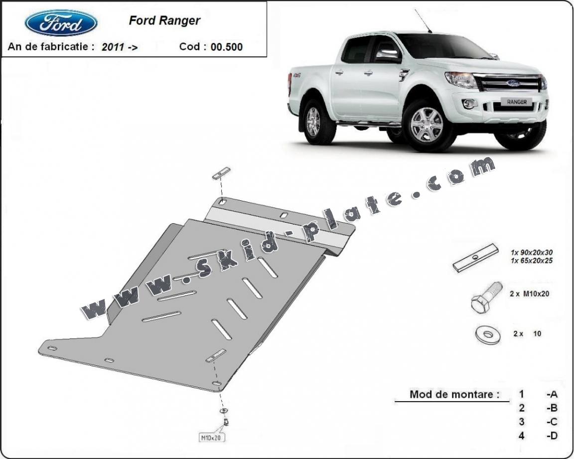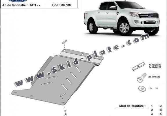 Steel gearbox skid plate for Ford Ranger (2011-2020)