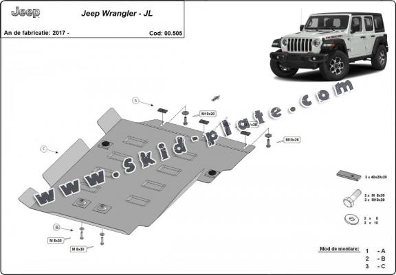 Steel gearbox skid plate for Jeep Wrangler - JL (2017-2026)