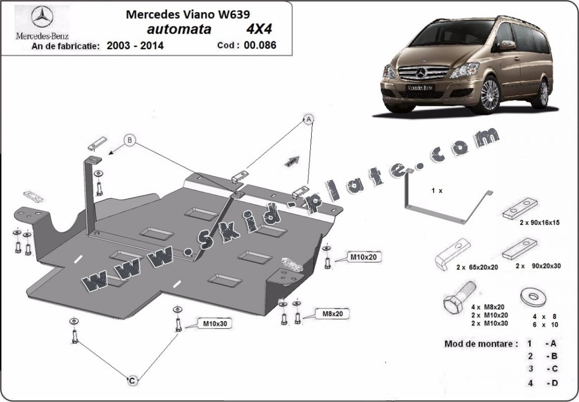 The skid plate is new and fits perfectly for the Mercedes Viano, with the following engine/drive versions: 4x4 - manufactured between 2003 and 2014.