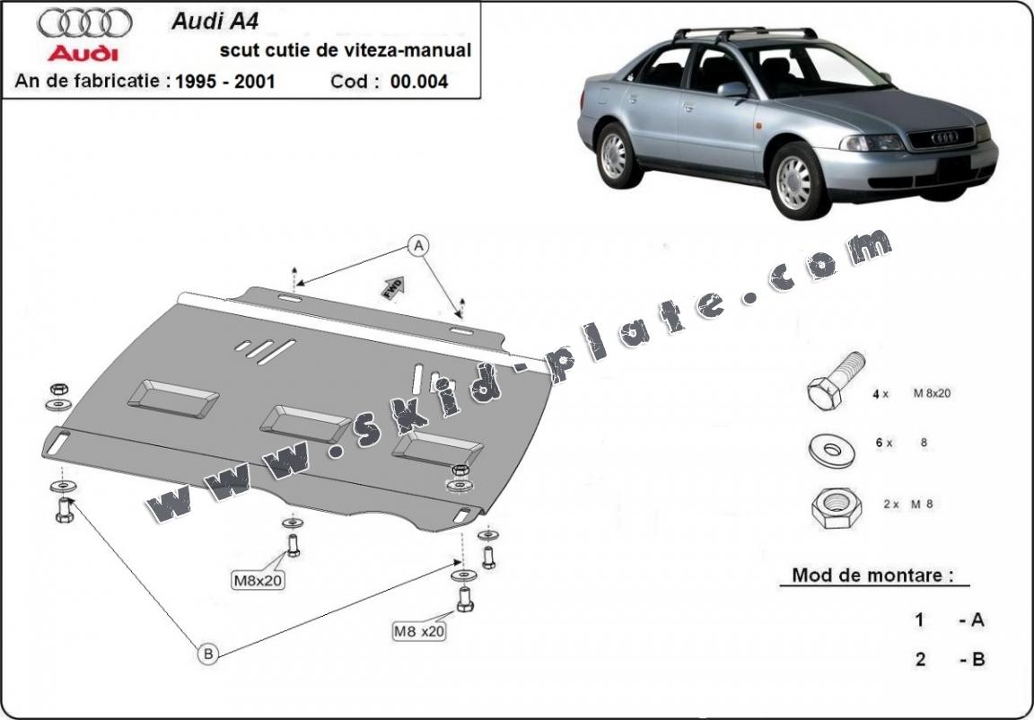The skid plate is new and fits perfectly for all versions of Audi A4 B5 - manuelle manufactured between 1995 and 2000.