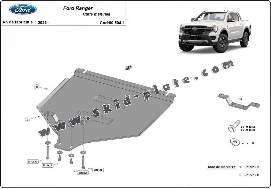 Steel manual gearbox skid plate Ford Ranger (2023-2026)