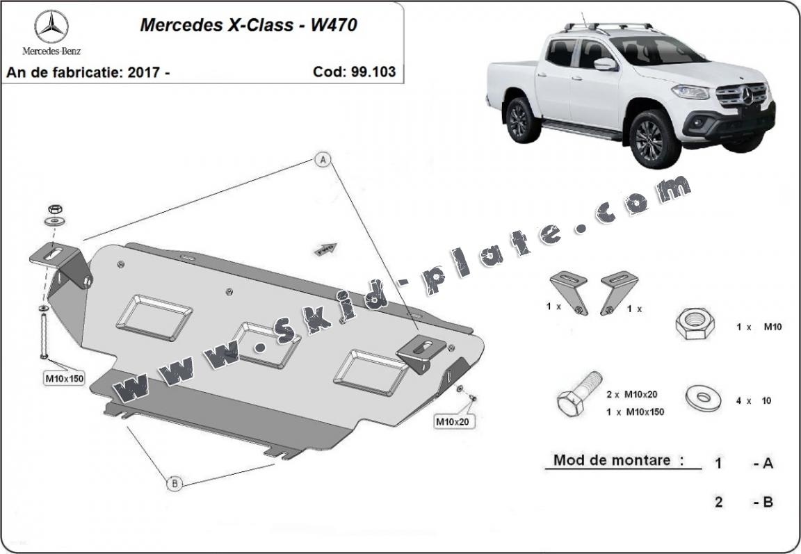 Steel gearbox skid plate and transfer case guard Mercedes X-Class W470