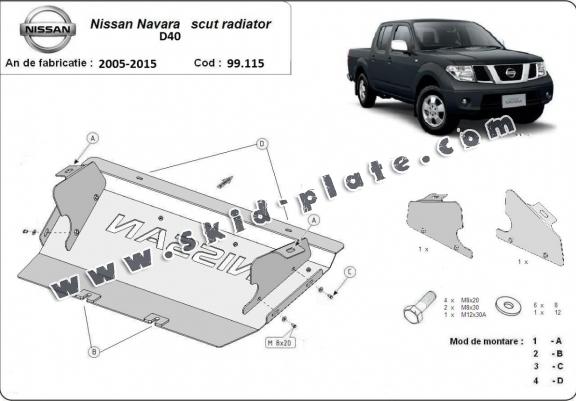 Steel radiator skid plate for Nissan Navara D40 (2005-2015)