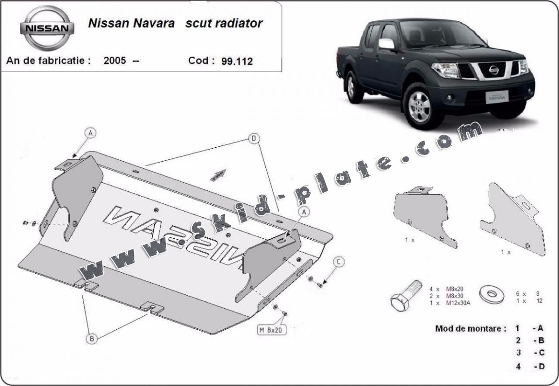 Steel radiator skid plate for Nissan Navara D40