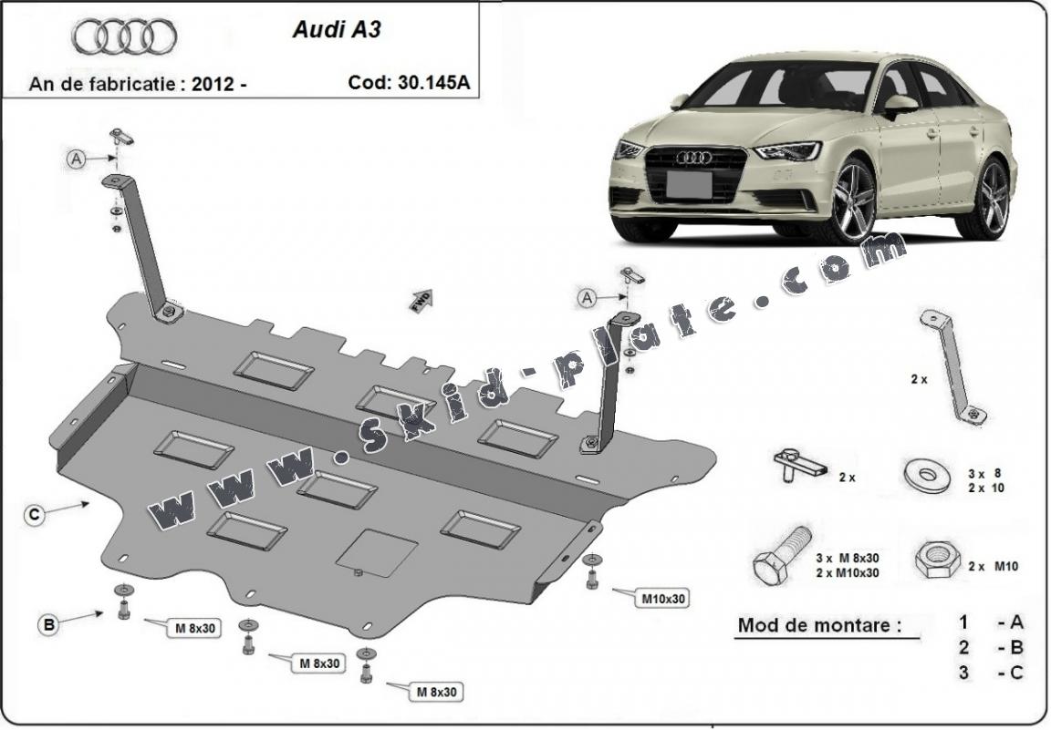The skid plate is new and fits perfectly for all versions of Audi A3 manufactured between 2012 and 2020.