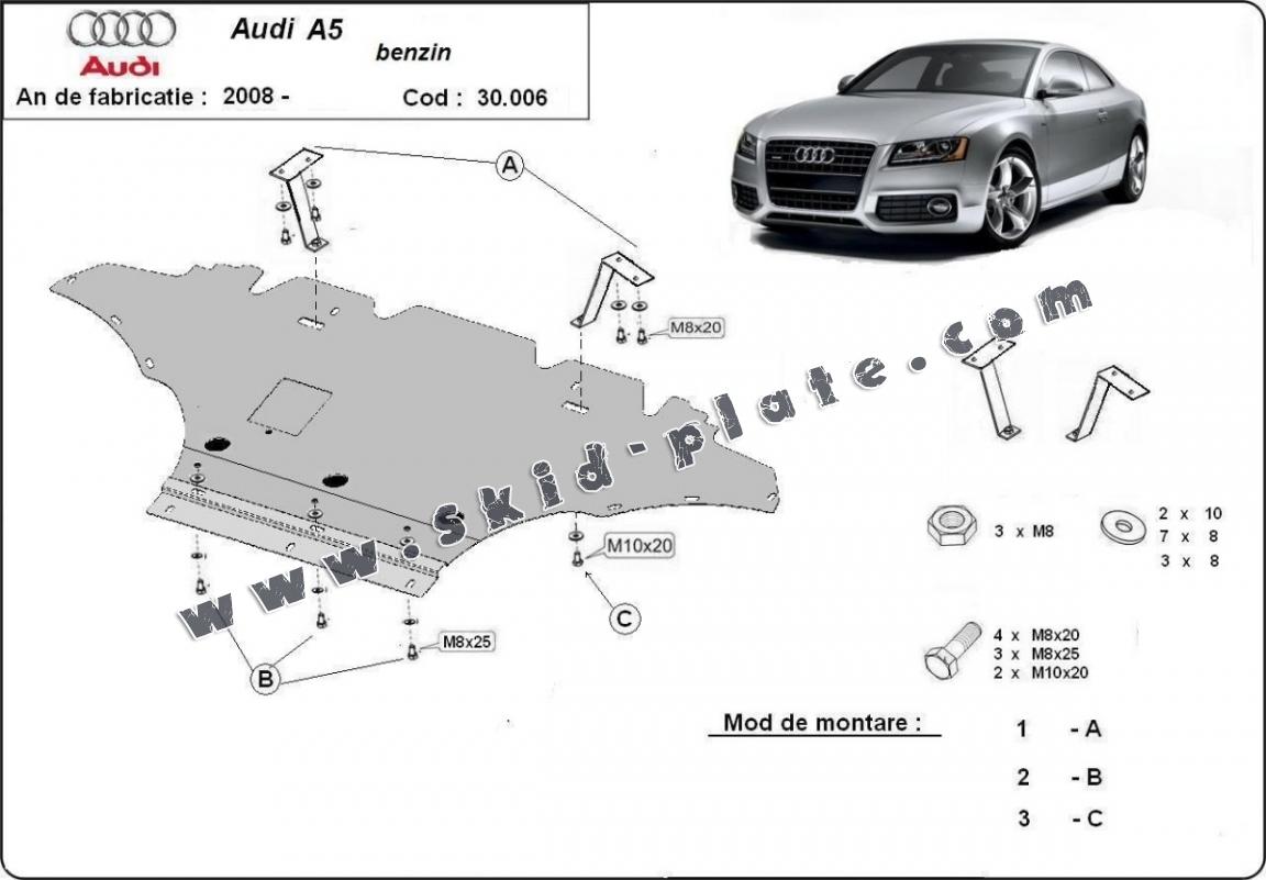 Steel skid plate for Audi A5, petrol