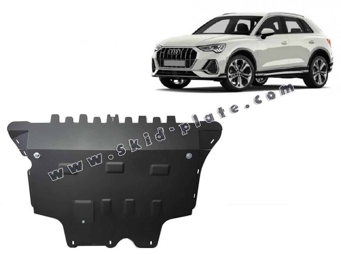 Skid plate for the protection of the: engine, gearbox, radiator, front bumper The skid plate is new and fits perfectly for all versions of Audi Q3 manufactured between 2018 and 2025. Made out of 2 mm thick Steel plate. Screws, nuts, clips, all fastening accessories are included. All skid plates are powder coated to prevent corrosion. The exterior of the skid plate is provided with Steel reinforcements, which increases the resistance to impact. |