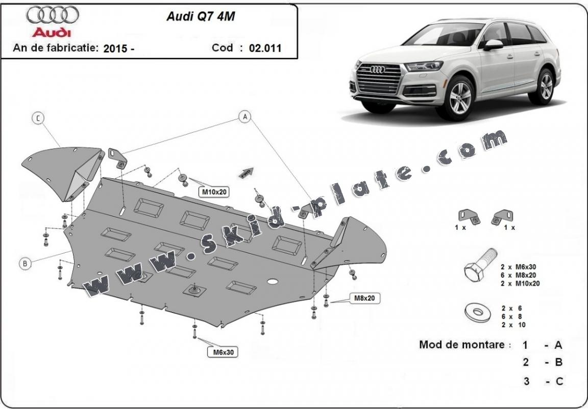 The skid plate is new and fits perfectly for all versions of Audi Q7 manufactured between 2015 and 2020.