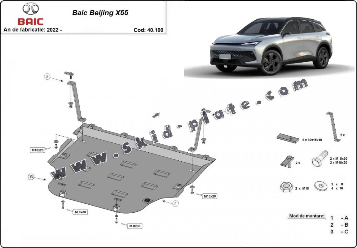 The skid plate is new and fits perfectly for all versions of Baic Beijing X55 manufactured between 2022 and 2026.