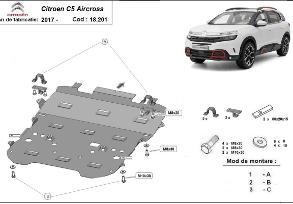 Steel skid plate for Citroen C5 Aircross (2017-2026)