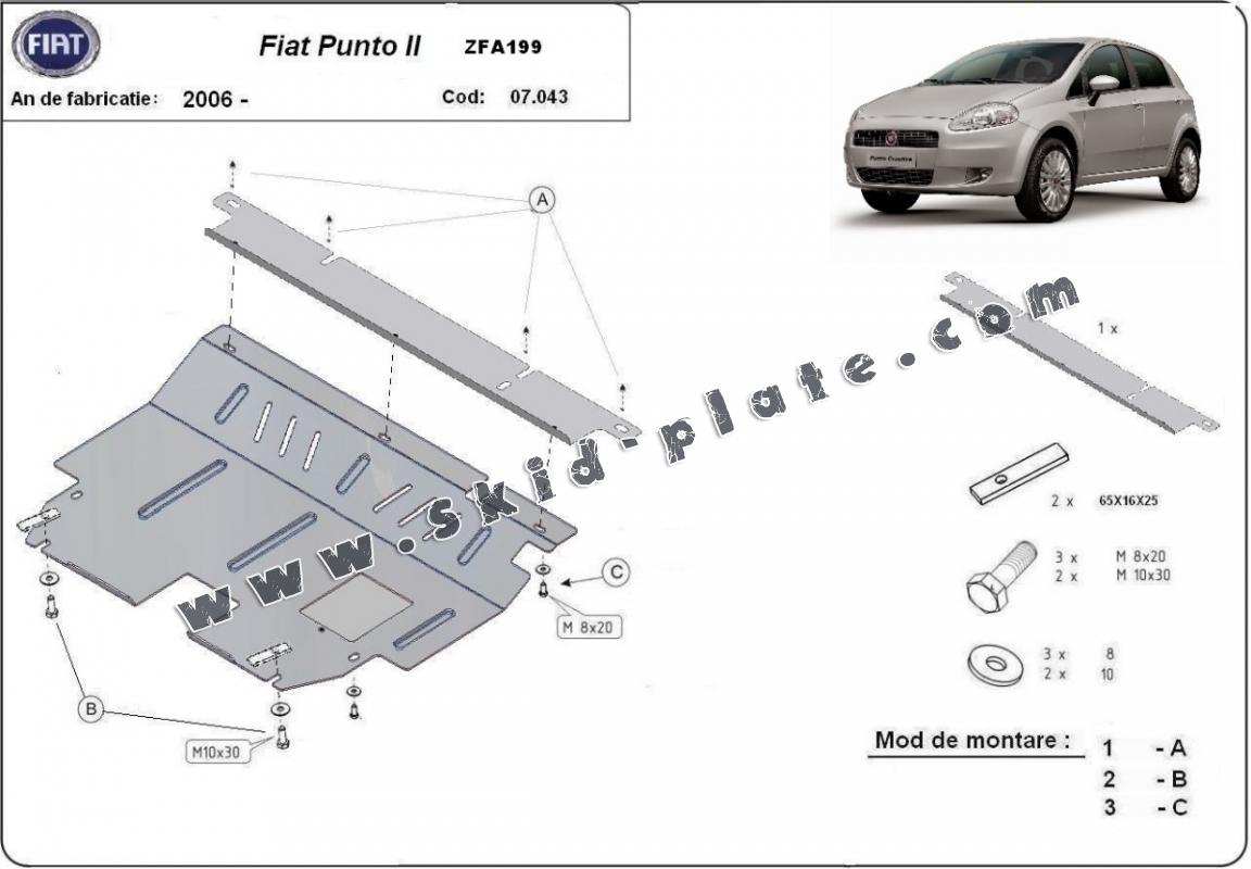 Skid plate for the protection of the: engine, gearbox, radiator The skid plate is new and fits perfectly for all versions of Fiat Punto manufactured between 2005 and 2018. It has an opening for the oil sump, so it's removal won't be necessary to change the oil. Made out of 2 mm thick Steel plate. Screws, nuts, clips, all fastening accessories are included. All skid plates are powder coated to prevent corrosion. The exterior of the skid plate is provided with Steel reinforcements, which increases the resistance to impact. |