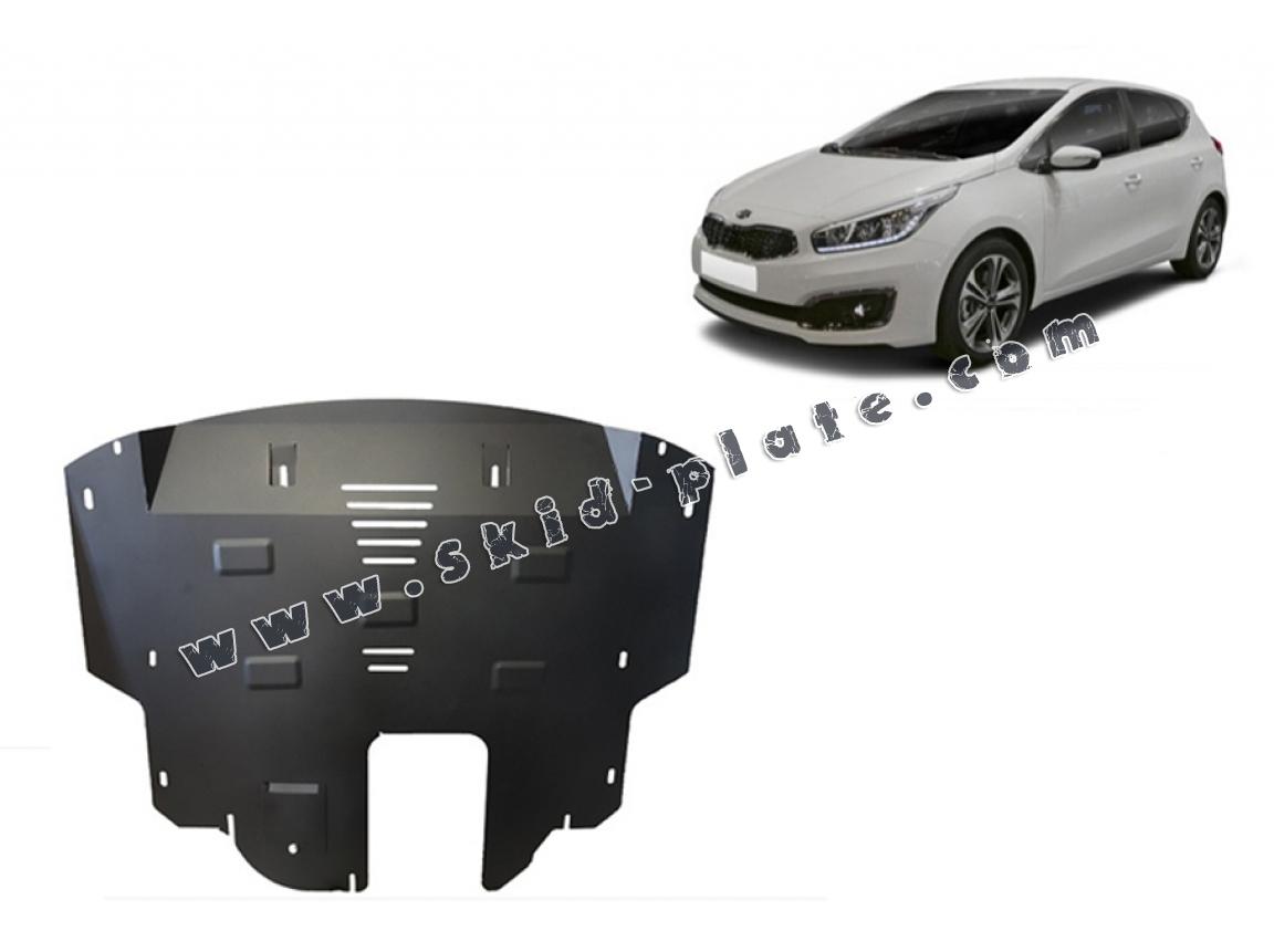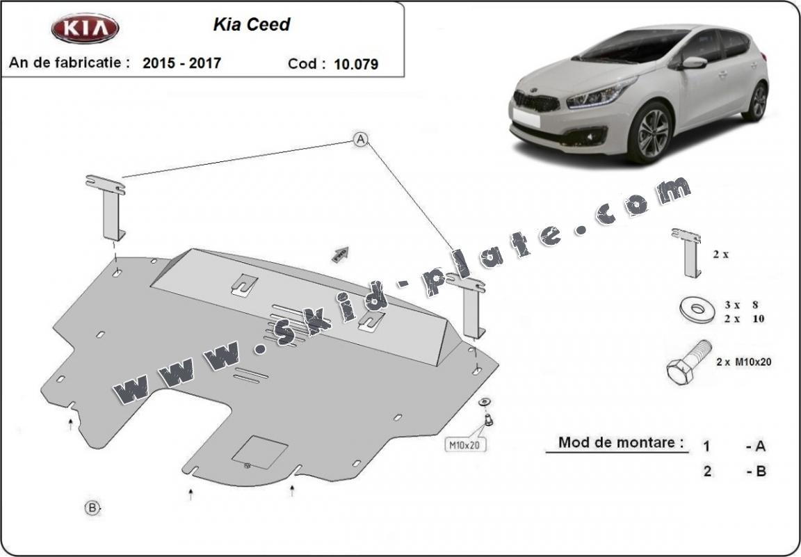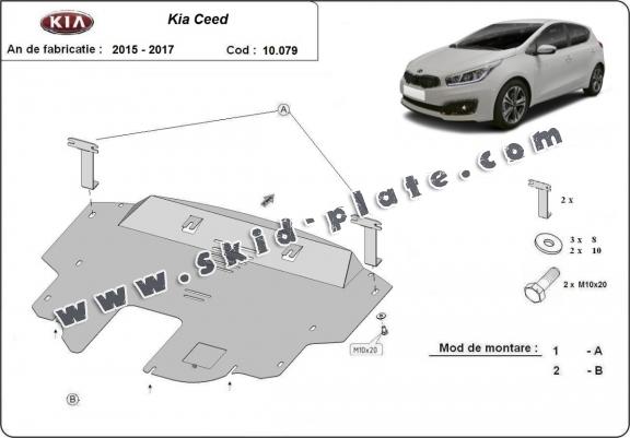 Skid plate for the protection of the: engine, gearbox, radiator The skid plate is new and fits perfectly for all versions of Kia Ceed manufactured between 2015 and 2017. Made out of 2 mm thick Steel plate. Screws, nuts, clips, all fastening accessories are included. All skid plates are powder coated to prevent corrosion. The exterior of the skid plate is provided with Steel reinforcements, which increases the resistance to impact. |