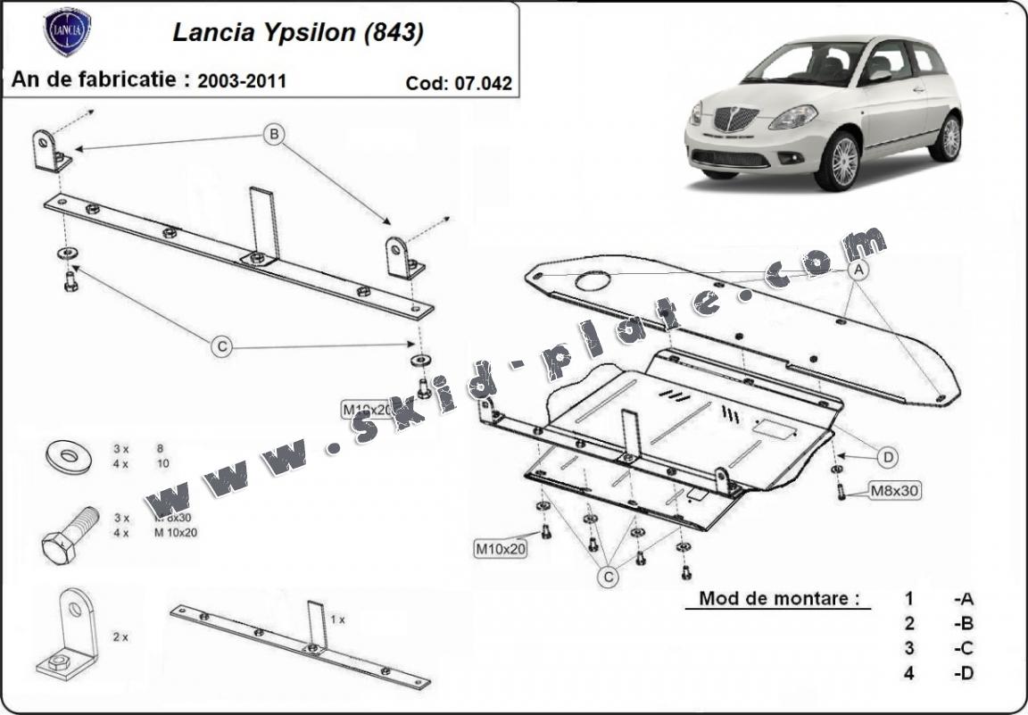 Steel skid plate for Lancia Ypsilon (843) (2003-2011)