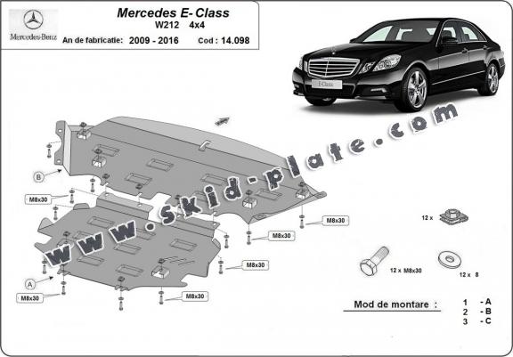 | The skid plate is new and fits perfectly for the Mercedes E-Classe W212, with the following engine/drive versions: 4x4 - manufactured between 2009 and 2016. |
