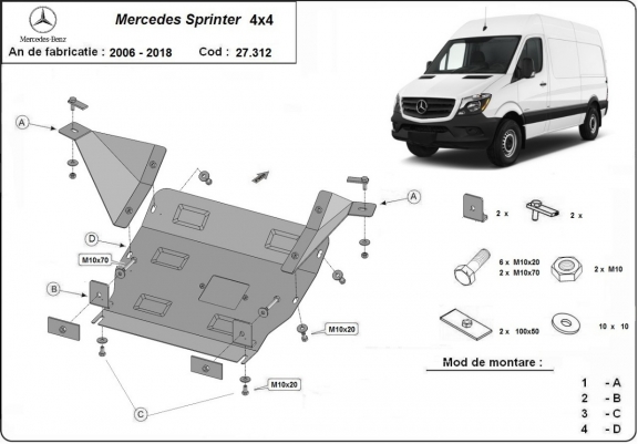 Steel skid plate for Mercedes Sprinter 906 4x4 (2006-2018)