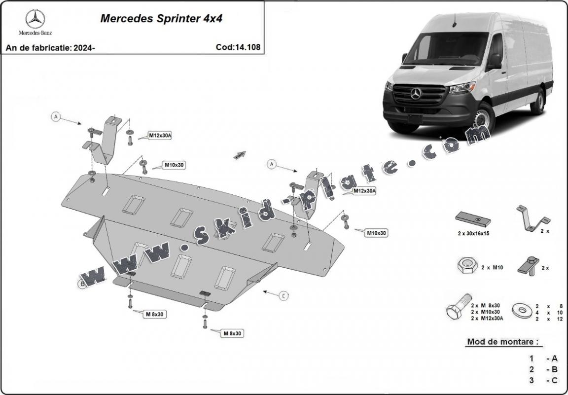 The skid plate is new and fits perfectly for the Mercedes Sprinter 4x4, with the following engine/drive versions: 4x4 - manufactured between 2024 and 2026.
