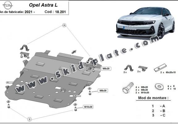 The skid plate is new and fits perfectly for all versions of Opel Astra L manufactured between 2021 and 2026.