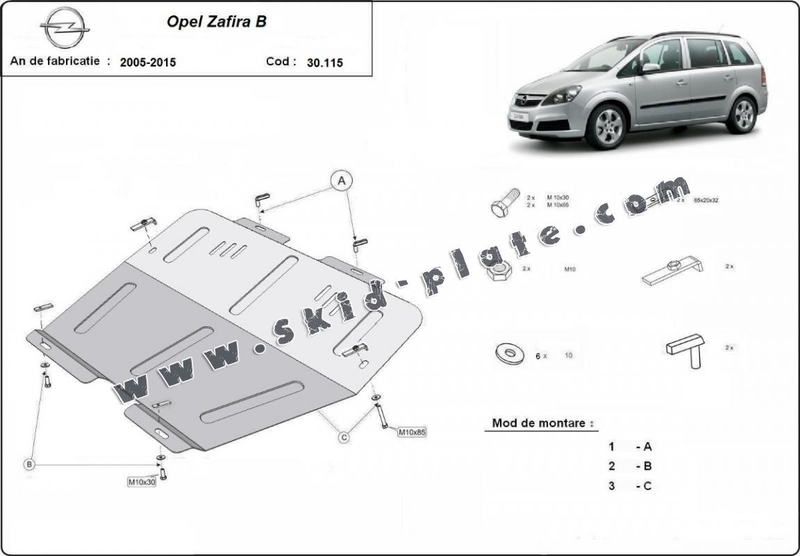 | The skid plate is new and fits perfectly for all versions of Opel Zafira manufactured between 2005 and 2015. |