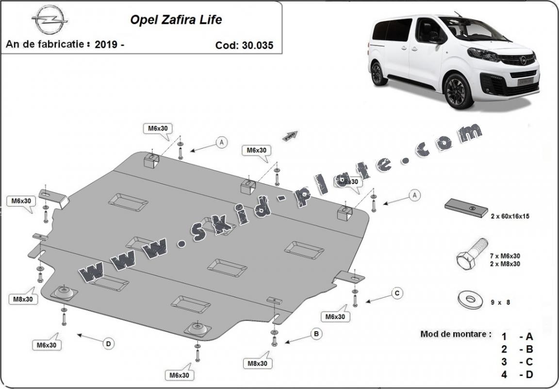 Steel skid plate for Opel Zafira Life (2019-2026)