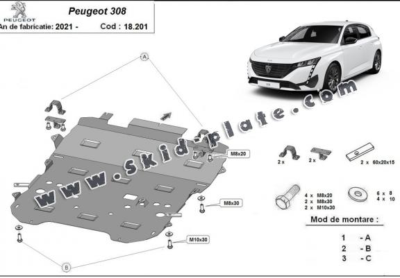 The skid plate is new and fits perfectly for all versions of Peugeot 308 manufactured between 2018 and 2026.