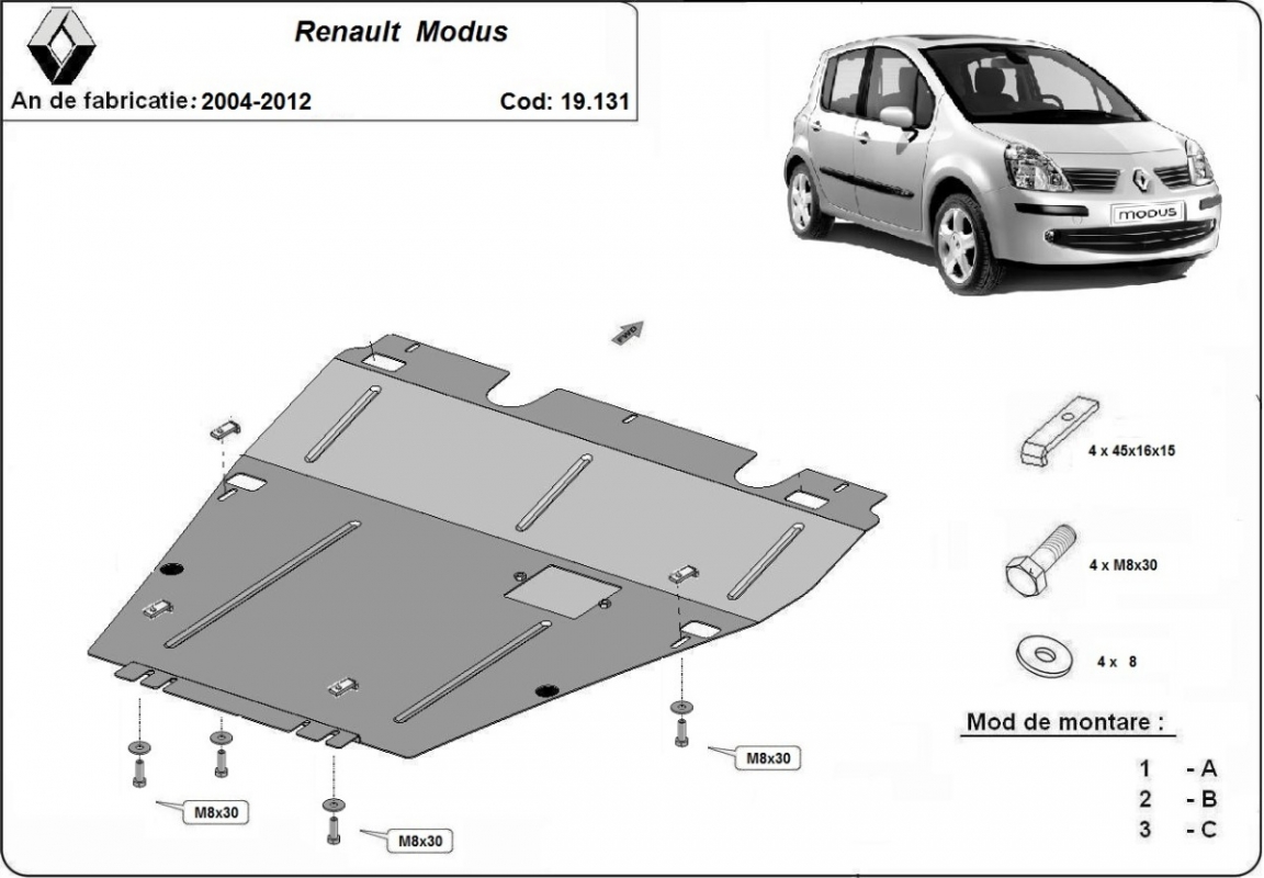 Steel skid plate for Renault Modus (2004-2012)