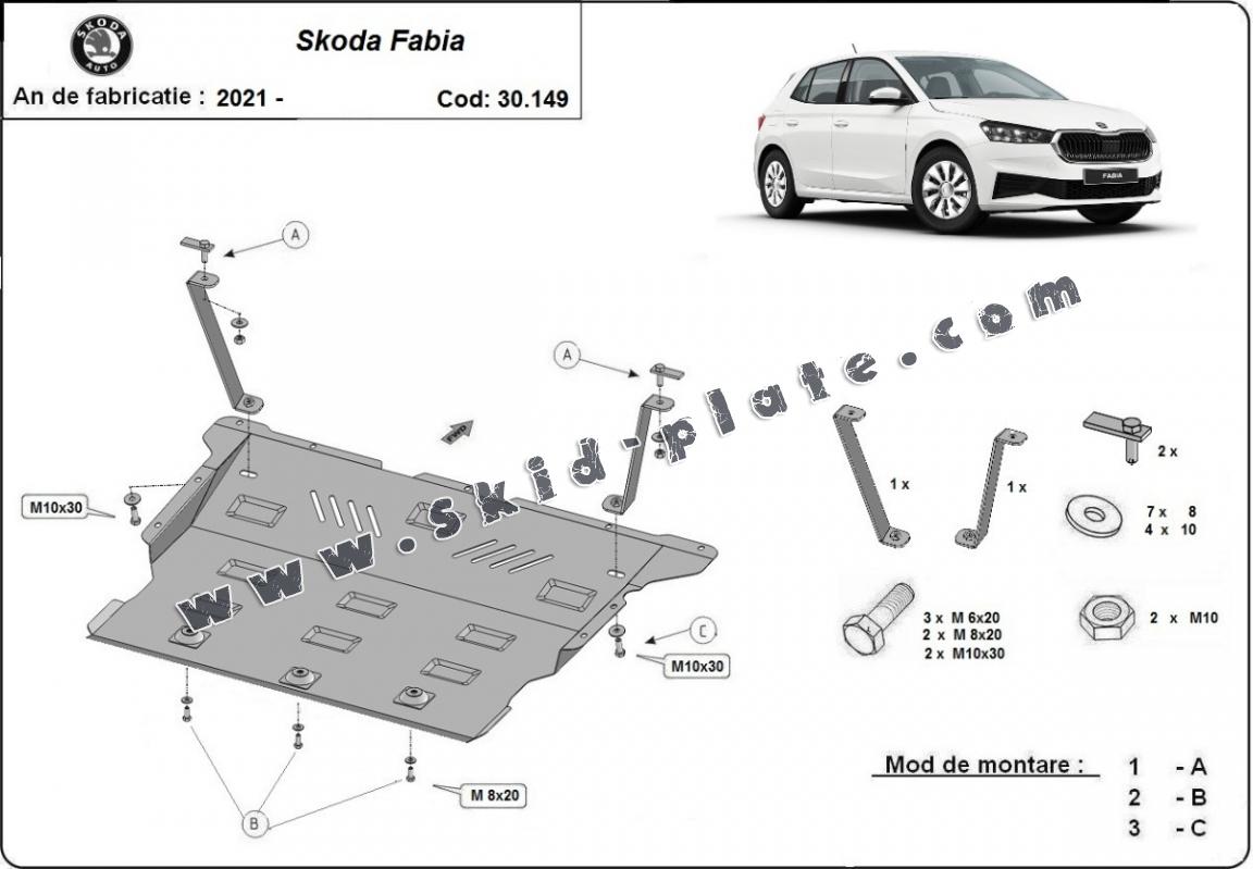 Steel skid plate for Skoda Fabia