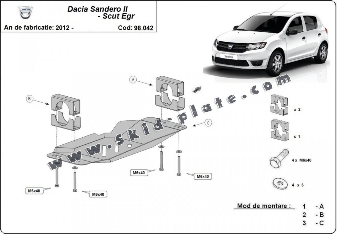Steel skid plate for Stop&Go system, EGR Dacia Sandero 2 (2012-2026)