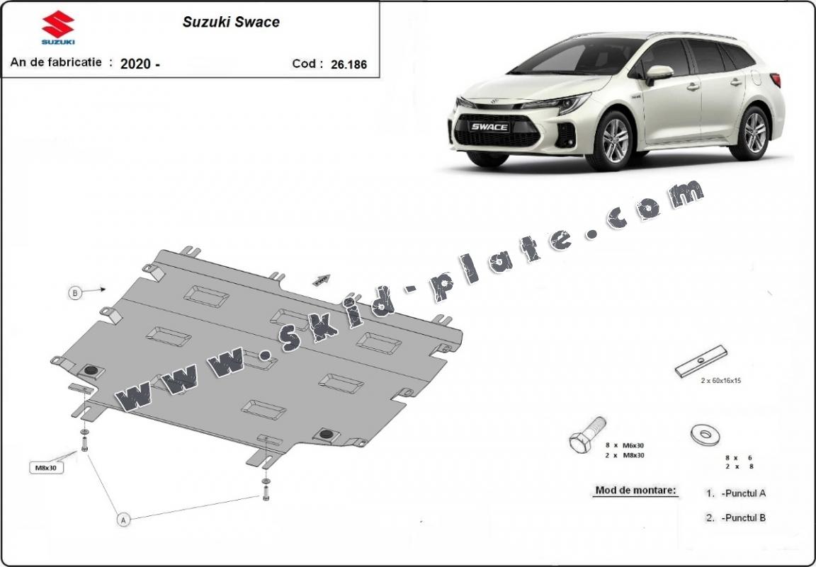 Skid plate for the protection of the: engine, gearbox The skid plate is new and fits perfectly for all versions of Suzuki Swace manufactured between 2020 and 2026. Made out of 2 mm thick Steel plate. Screws, nuts, clips, all fastening accessories are included. All skid plates are powder coated to prevent corrosion. The exterior of the skid plate is provided with Steel reinforcements, which increases the resistance to impact. |