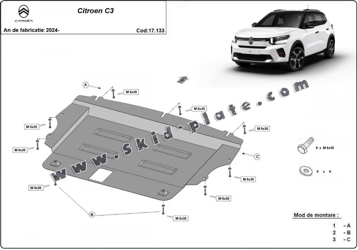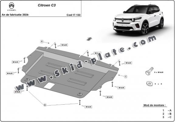 Steel skid plate for the protection of the engine and the gearbox for Citroen C3 (2024-2026)