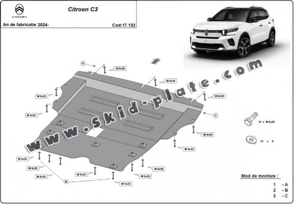 Steel skid plate for the protection of the engine and the gearbox for Citroen C3 (2024-2026)