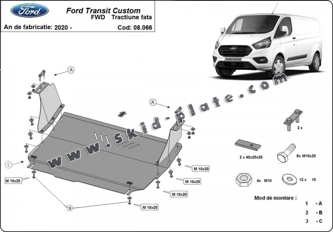 Steel skid plate for the protection of the engine and the gearbox for Ford Transit Custom - FWD (2020-2023)