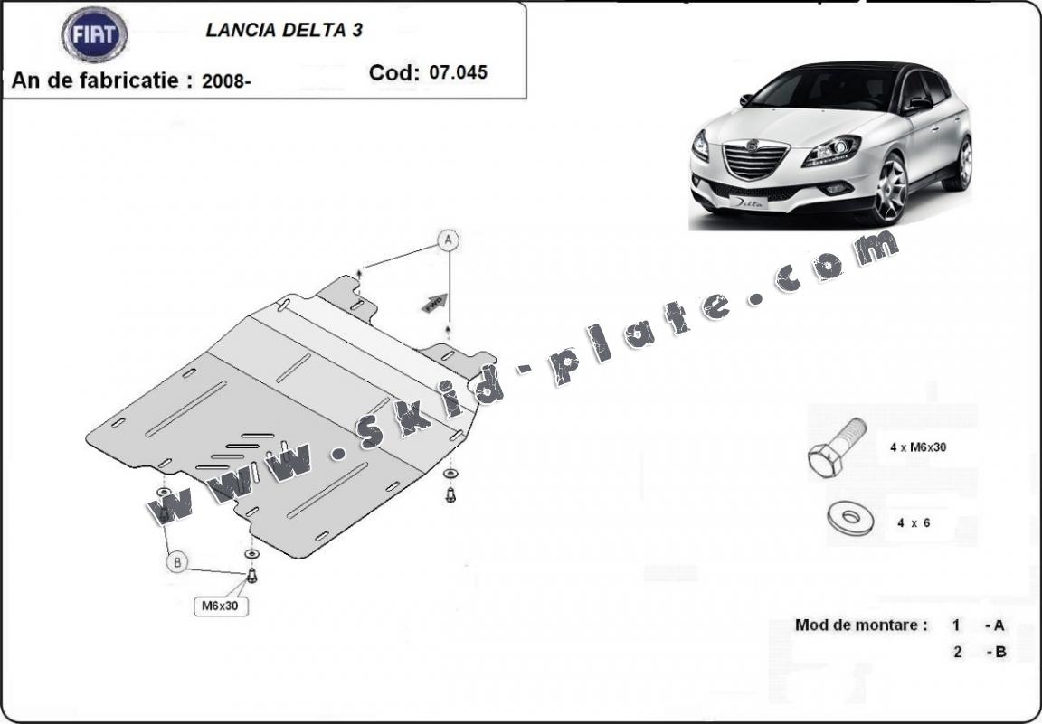 | The skid plate is new and fits perfectly for all versions of Lancia Delta 3 manufactured between 2008 and 2020. |