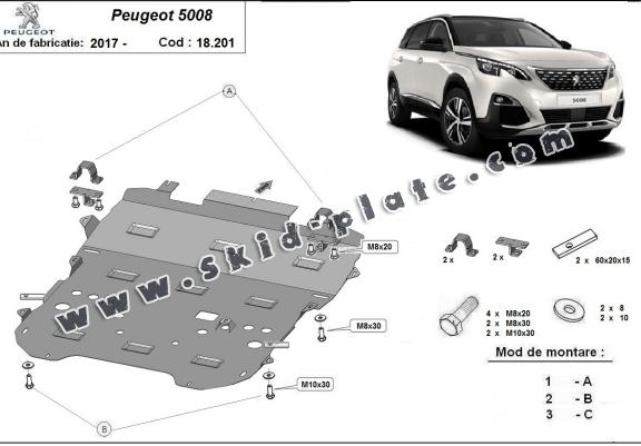 Steel skid plate for the protection of the engine and the gearbox for Peugeot 5008 (2017-2026)