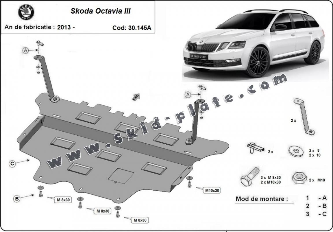 Steel skid plate for the protection of the engine and the gearbox for Skoda Octavia 3 - automatic gearbox