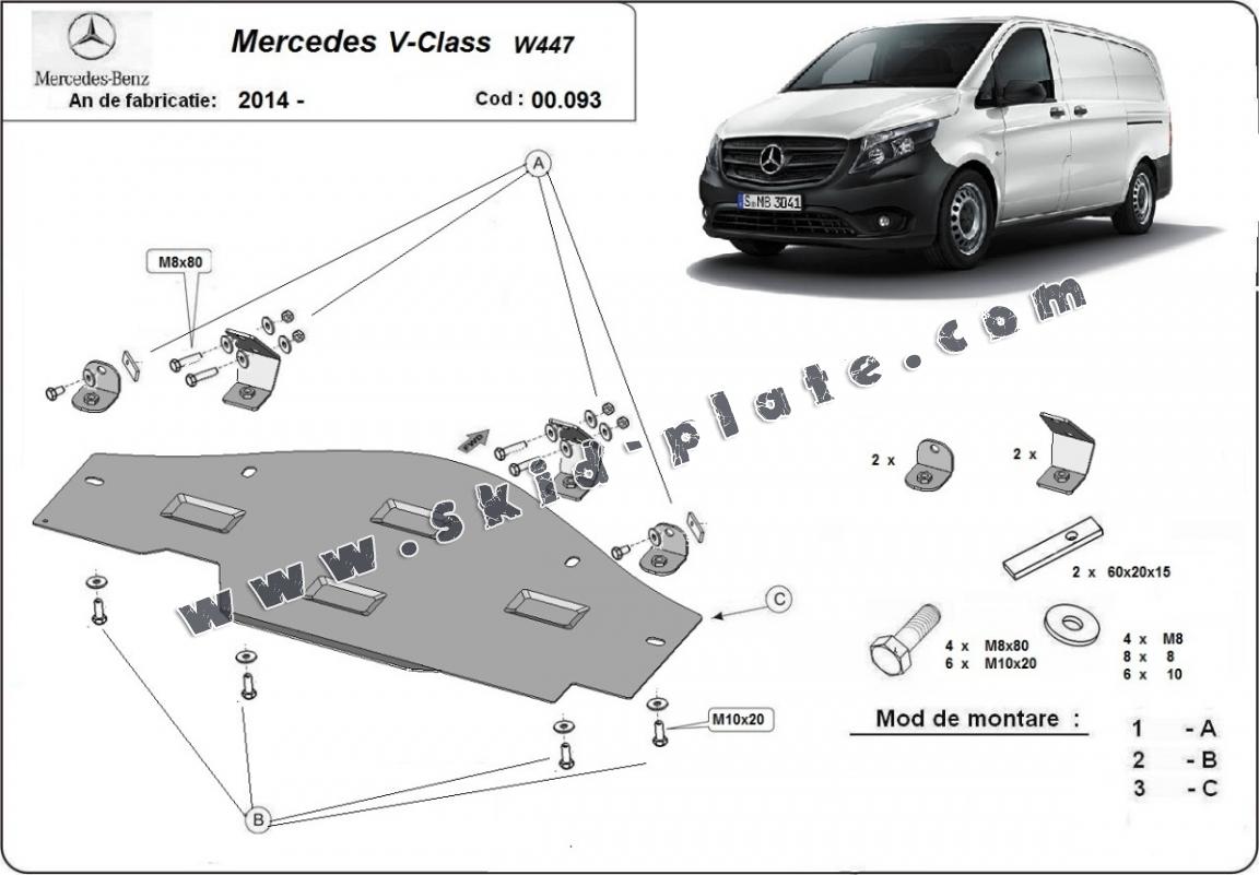 Steel skid plate for the protection of the Stop&Go system Mercedes V-Classe W447, 4x2, 1.6 D (2014-2026)