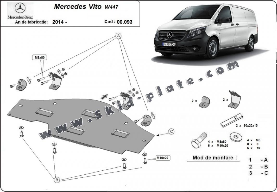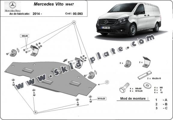 Steel skid plate for the protection of the Stop&Go system Mercedes Vito W447, 4x2, 1.6 D (2014-2026)
