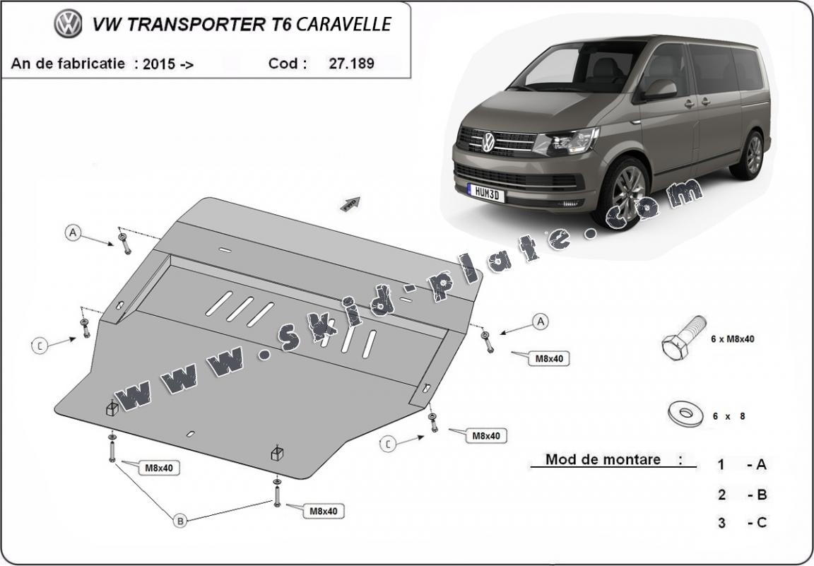 Steel skid plate for Volkswagen Transporter T6 Caravelle