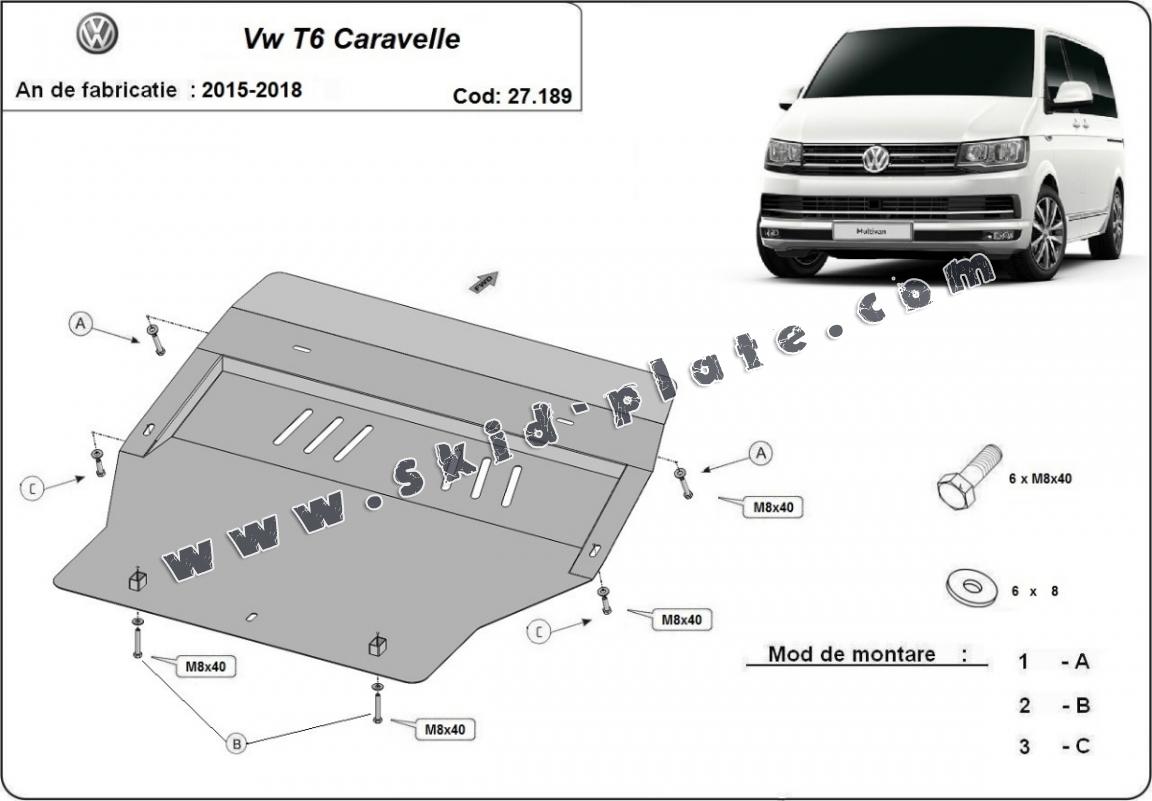 | The skid plate is new and fits perfectly for all versions of Volkswagen Transporter T6 - Caravelle manufactured between 2015 and 2020. |