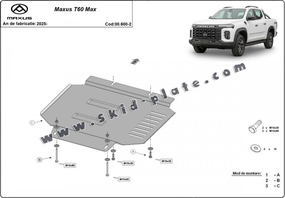 The skid plate is new and fits perfectly for all versions of Maxus T60 Max manufactured between 2025 and 2026.
